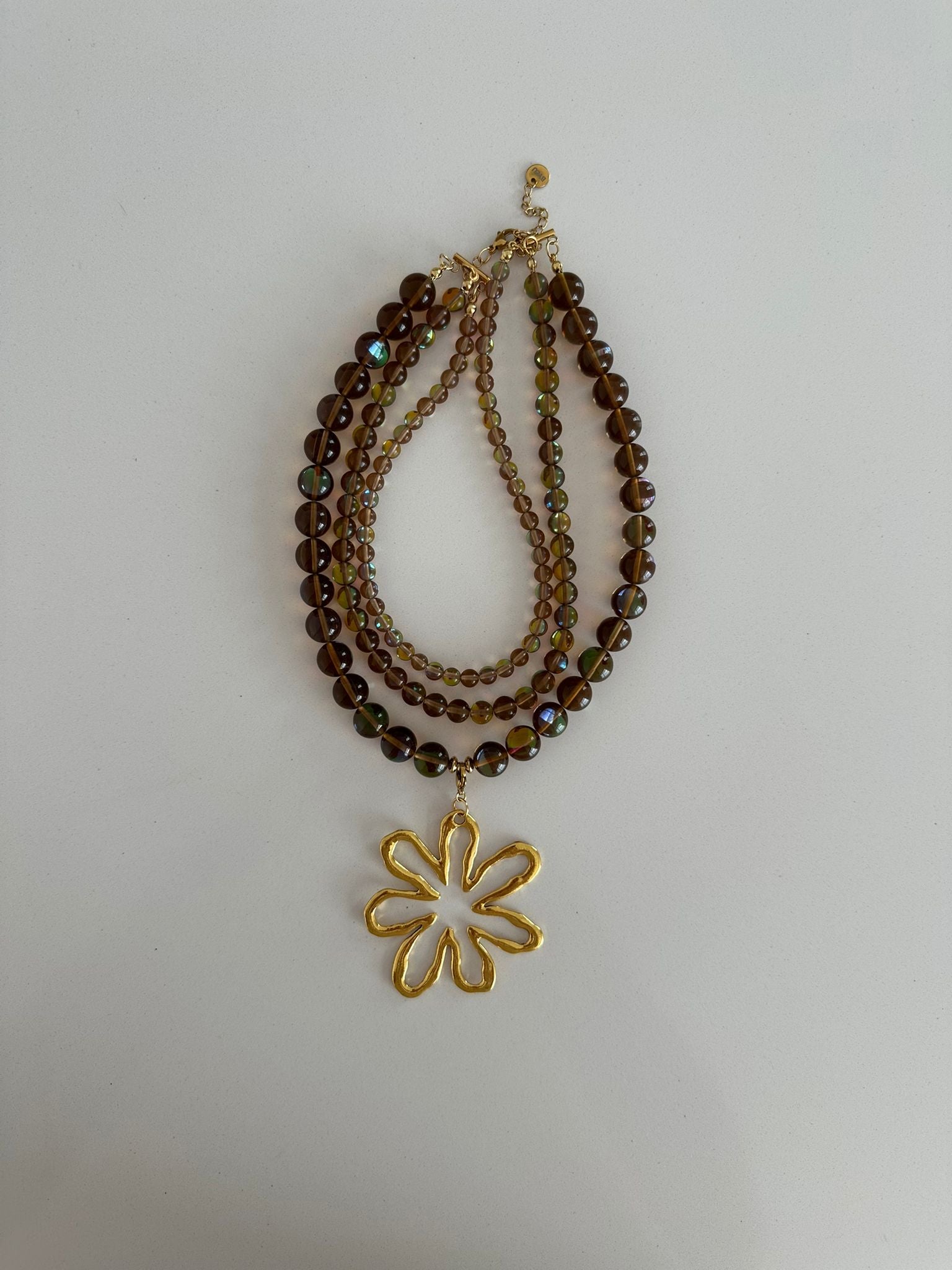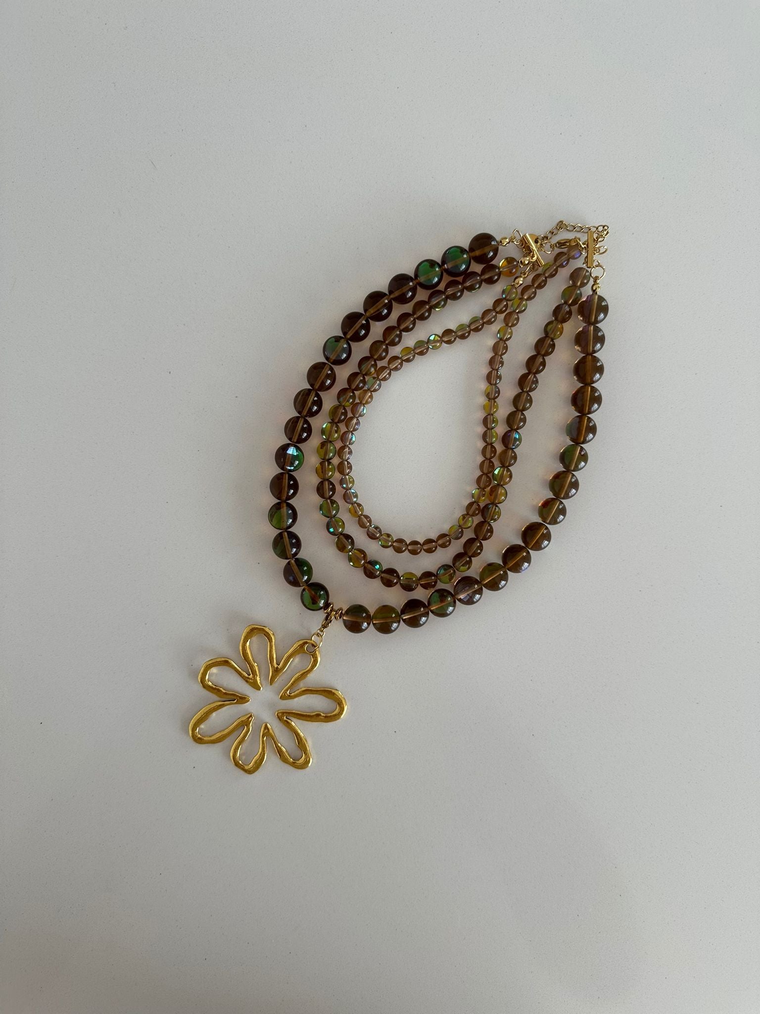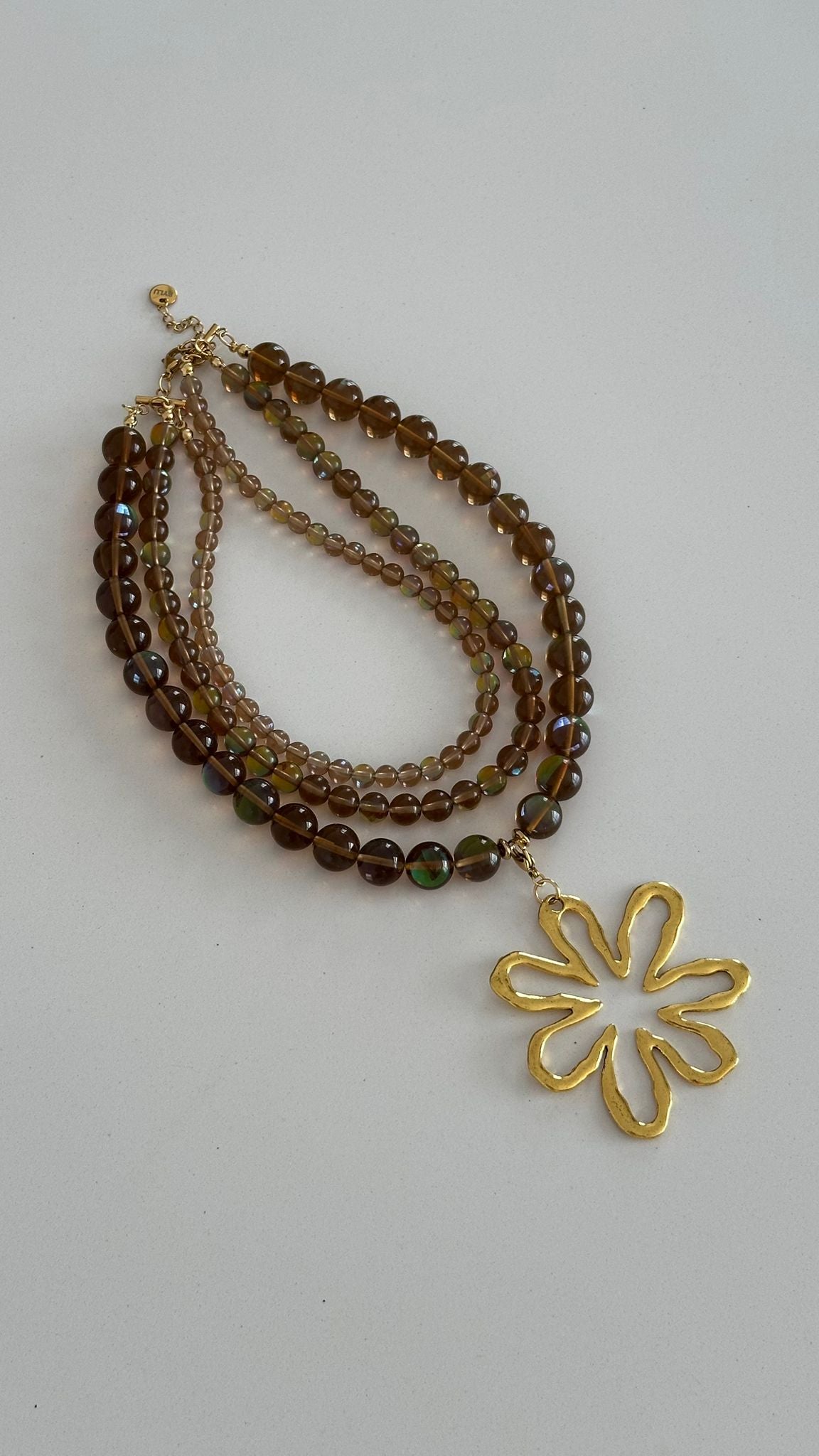 Collar tripe de piedra natural transparente en tonos marrones