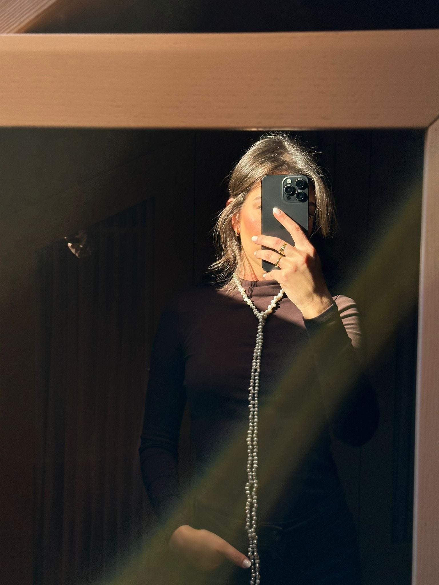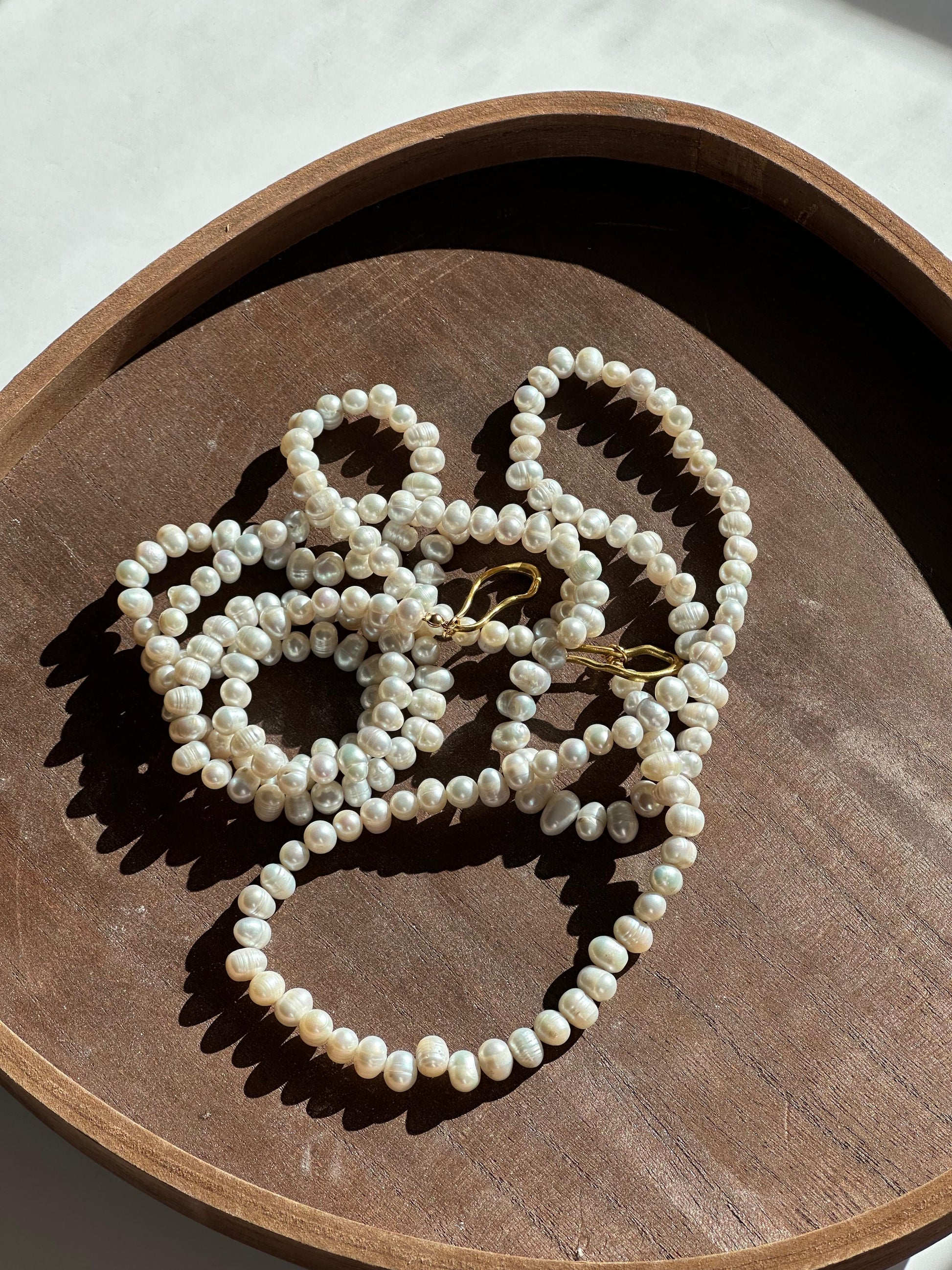 Collar multiposición de perla de río en tono blanco/grisáceo