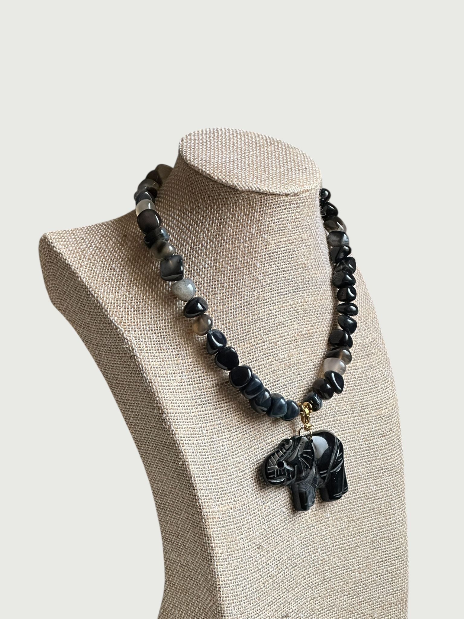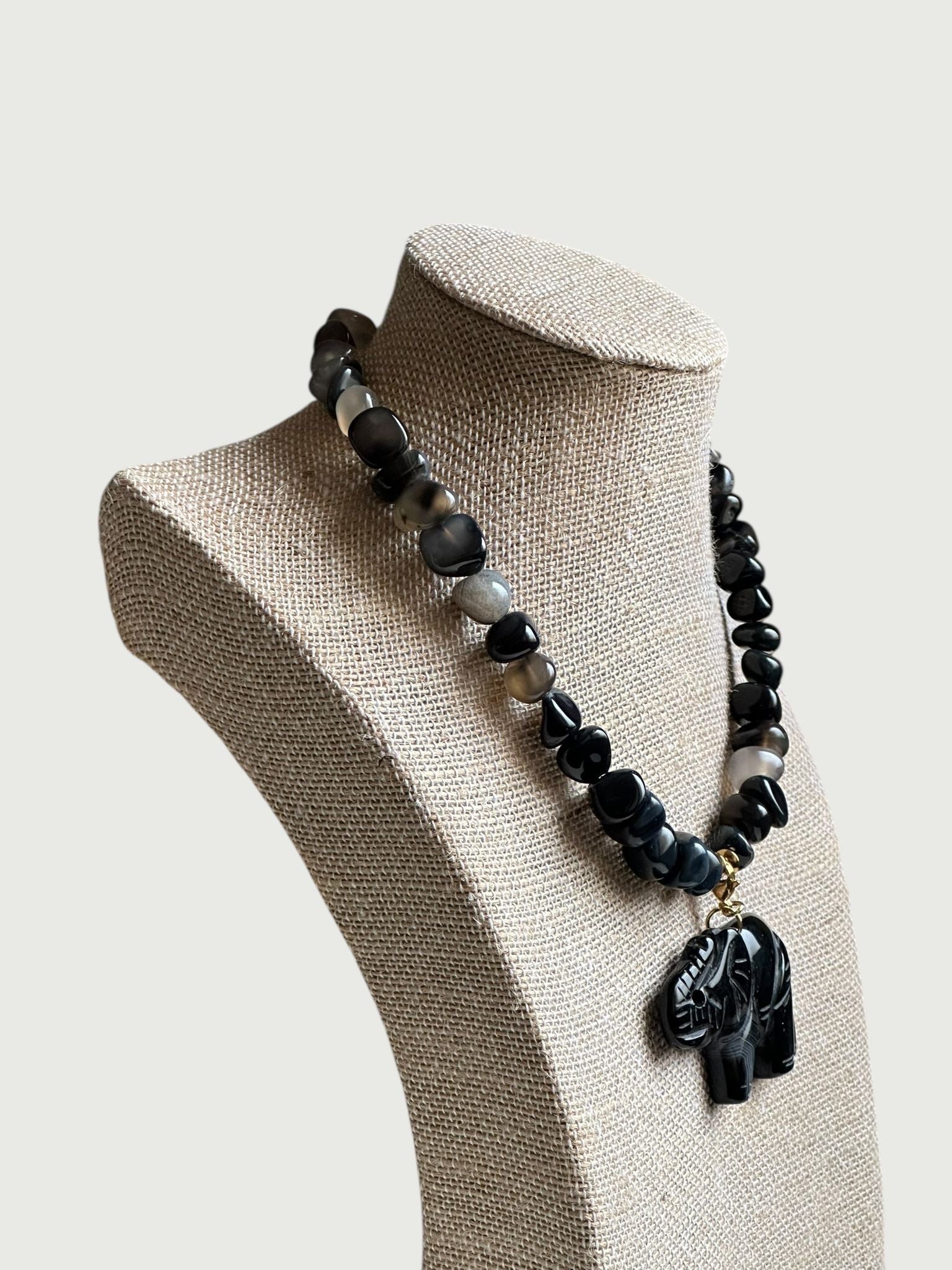 Collar básico de piedras de ágata irregulares en tonos grisáceos