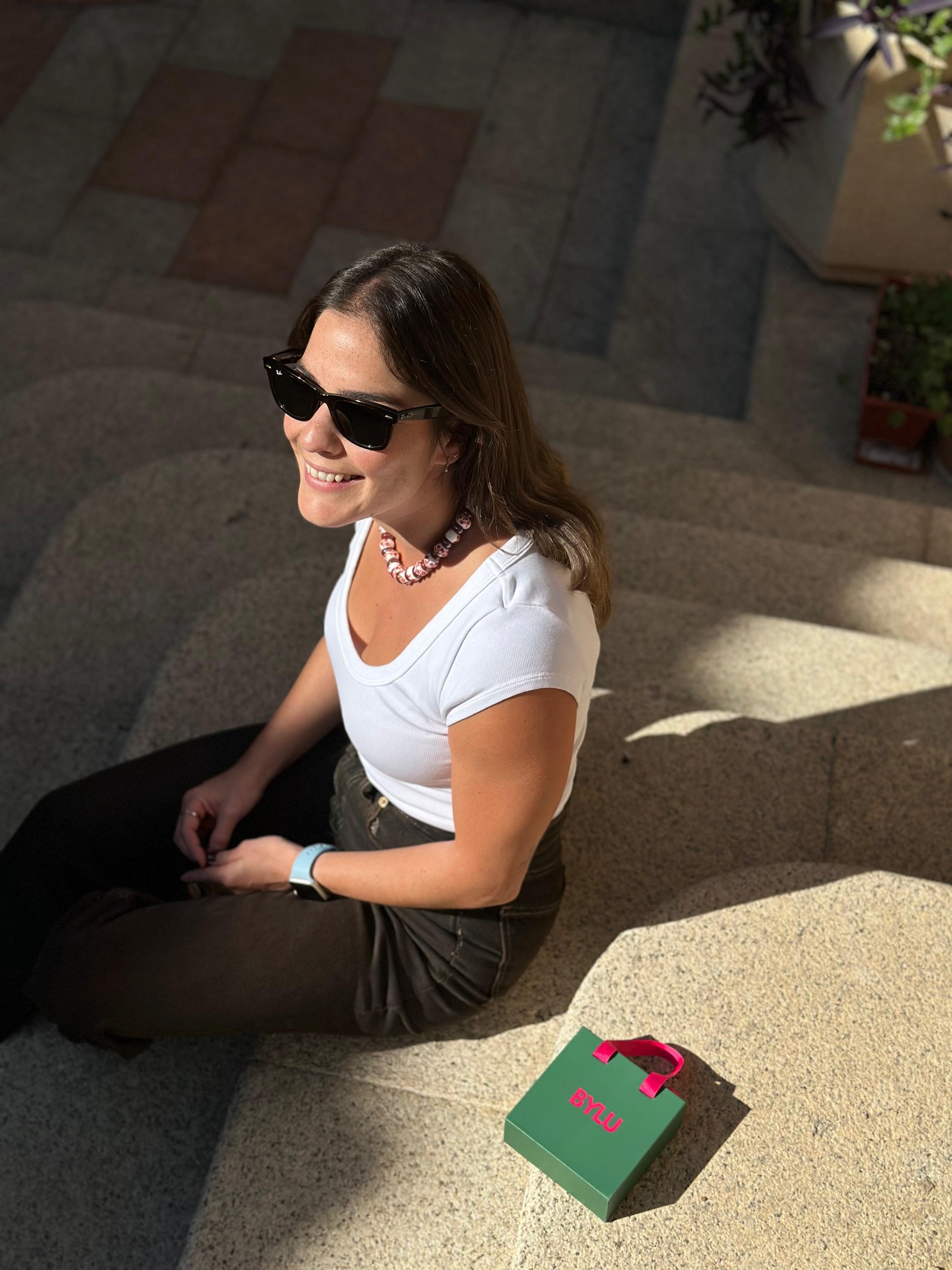 Cuentas de cerámica en dos colores forman este collar tan llamativo.