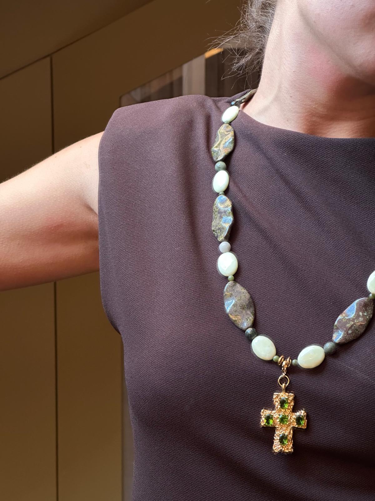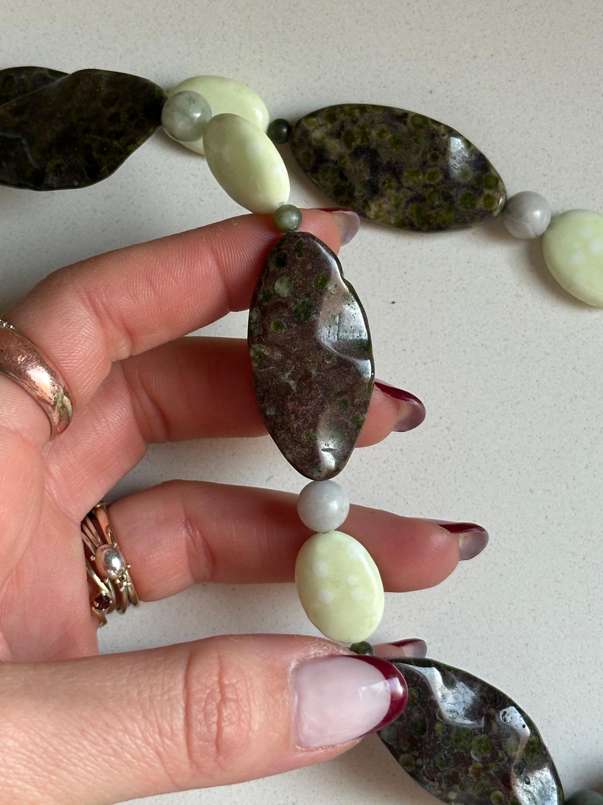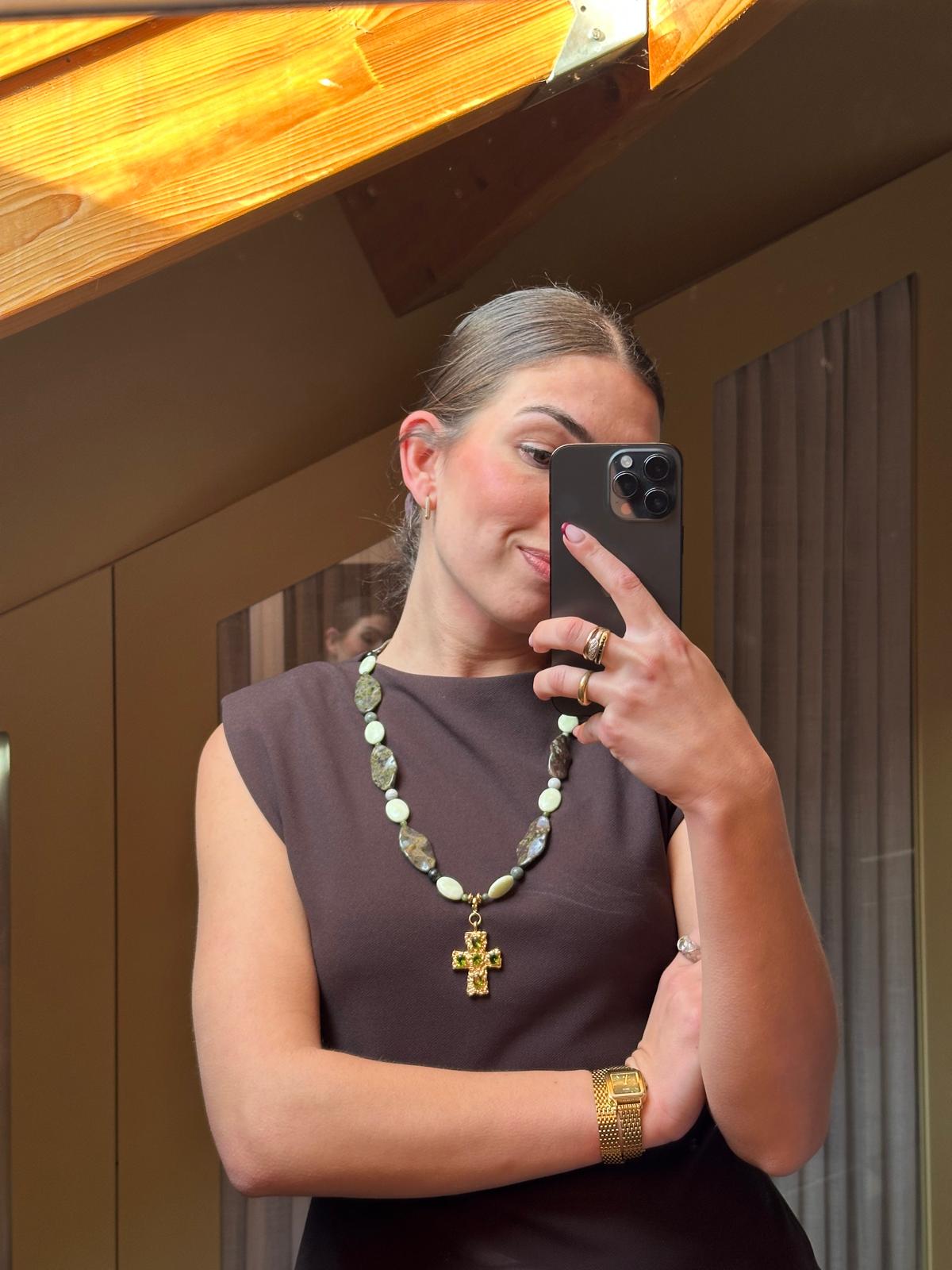 El modelo Marcela luce mucho y pesa poco a pesar de ser de piedras naturales en tonos verdes.